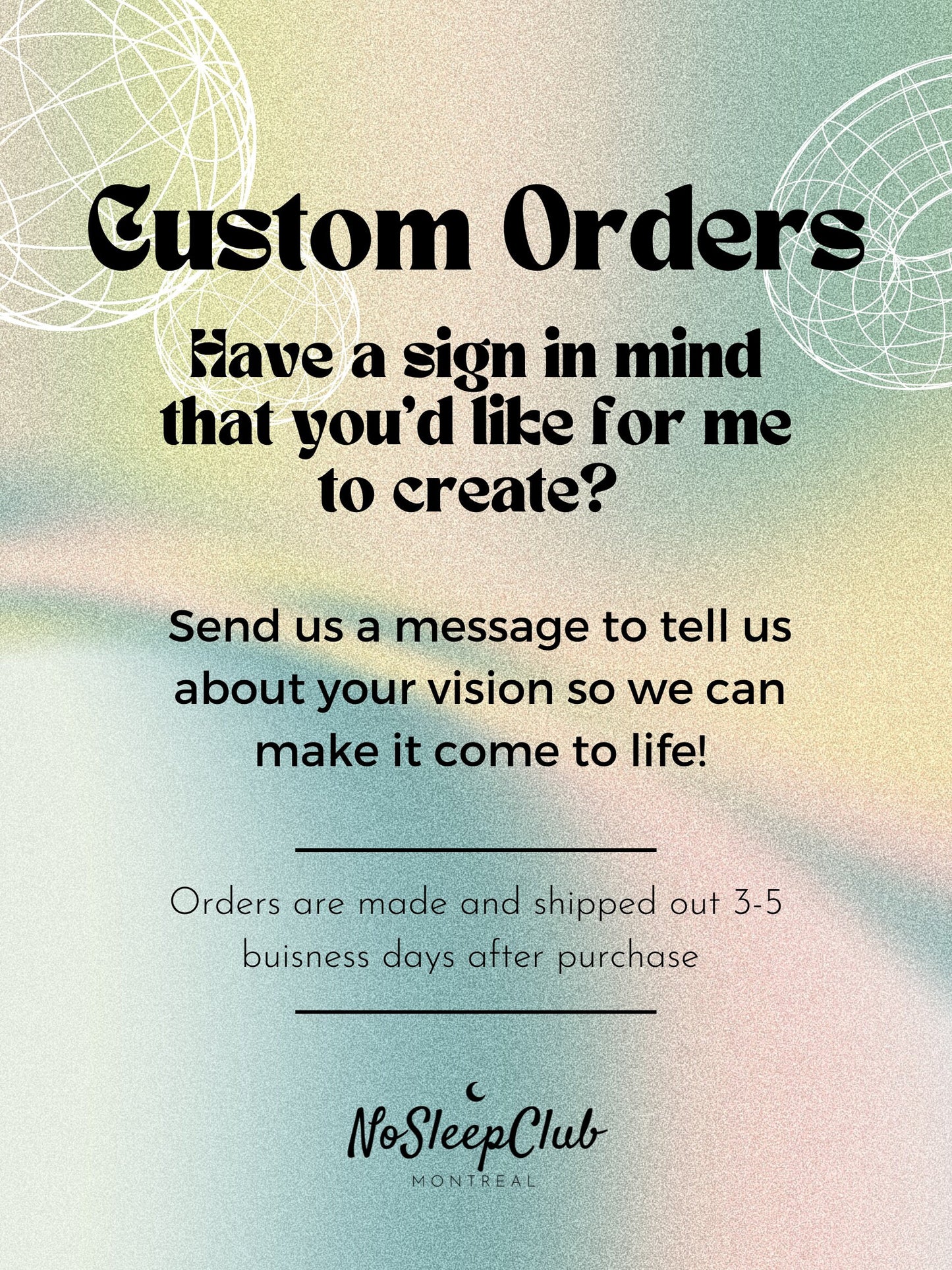 To power it on, you'll need 2 AA batteries (not included), or you can opt for a USB plug-in option available in our store for those who plan to keep their sign illuminated for extended periods. Please be aware that this is a model, and orders may occasionally exhibit minor variations as all pieces are handmade! ✨